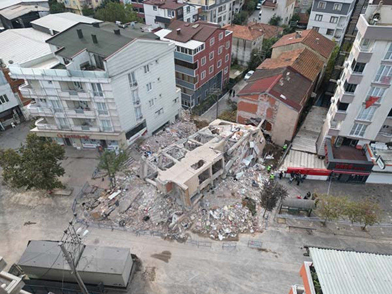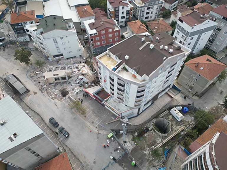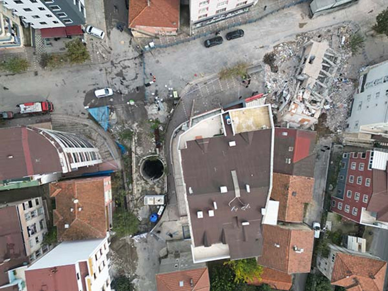 Yıkımın meydana geldiği Arslan Apartmanı’nın enkazı ve mühürlenen 12 binanın bulunduğu bölge, drone ile havadan görüntülendi. Ayrıca bölgede bir süredir devam eden metro hattı çalışmasının da sürdüğü gözlemlendi. Metro çalışmaları için açılan kuyu da dron görüntülerine yansıdı.