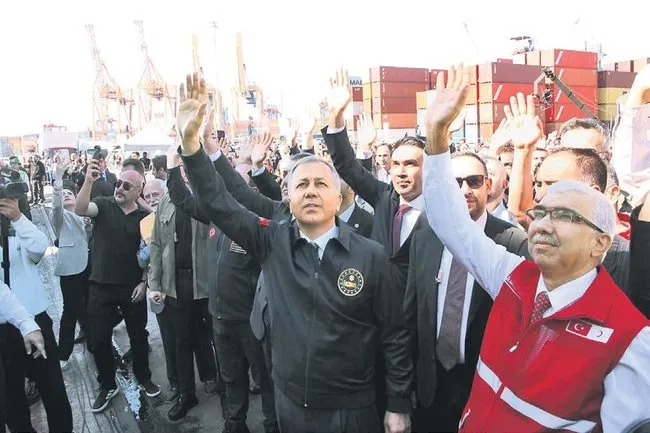 Mersin'den Gazze'ye 900 ton insani yardım malzemesi taşıyan '17. İyilik Gemisi', İçişleri Bakanı Ali Yerlikaya'nın katıldığı törenle yola çıktı. İsrail'in saldırıları altında bulunan ve ateşkes anlaşması imzalanan Gazze'deki sivillerin yaralarını sarmak için hazırlanan gıda, konserve ve bebek mamasından oluşan 900 ton insani yardım malzemesinin taşınacağı “Akdeniz” isimli gemi, Mersin Limanı'ndan hareket etti. Törende konuşan Bakan Yerlikaya, “İsrail, zalimliğiyle Filistin topraklarını bir cezaevine dönüştürdü. 7 Ekim 2023 tarihinden bu yana dünya bir utanç tablosu ile karşı karşıya. İsrail, insanlık suçu işleyerek soykırım gerçekleştirdi.” dedi.