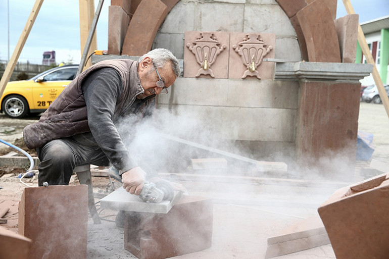Yılmaz, taşları işlemenin zorluklarına da değinerek, “Çeşmede kullandığım bir kemer taşının ham hali 100 kilogramdır. Bu taş yerinden çıkıyor, araca yükleniyor ve atölyede işleniyor. Bunu en az on kez indirip kaldırdığımızda taşın insan için toplamda 1.5 tonluk bir yük haline geldiğini görüyoruz.” ifadelerini kullandı.