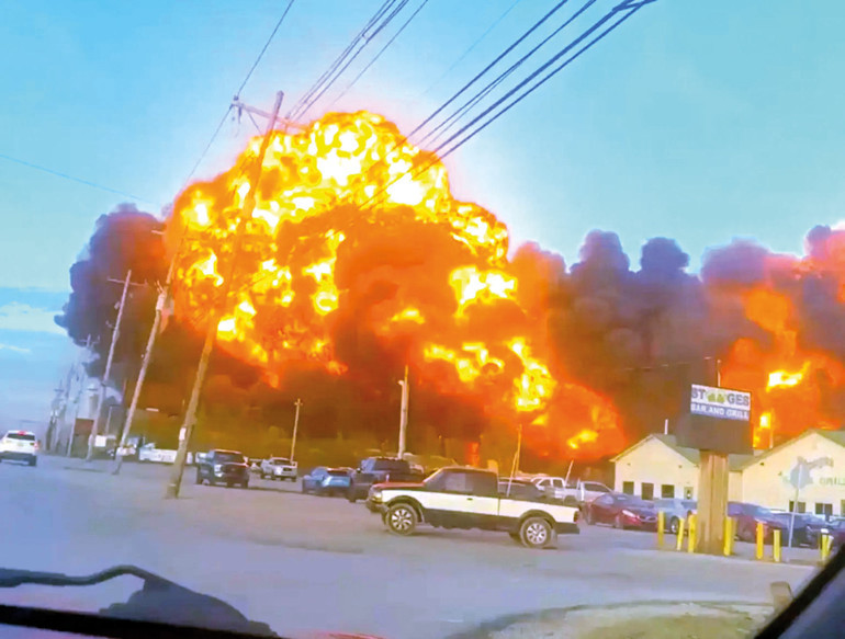 Patlamalar ve yoğun dumanla birlikte alevlerin 1.5 kilometrelik bir alana yayıldığı görüldü.