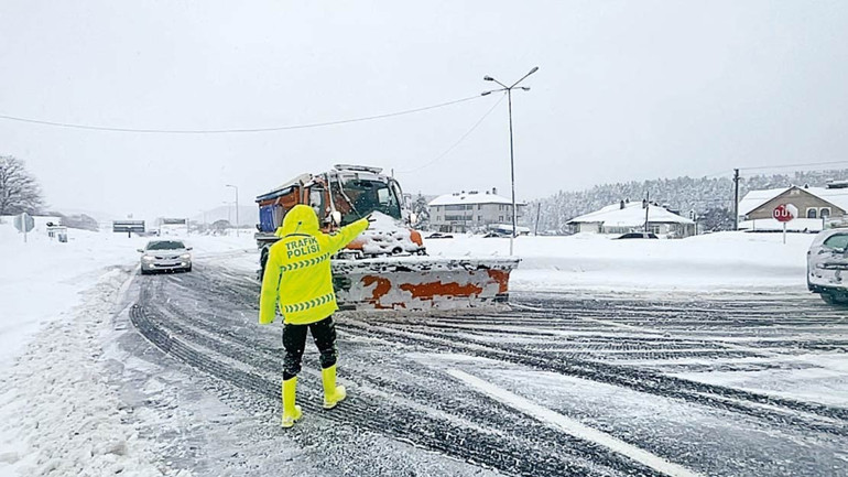 D-100 karayolunun Bolu Dağı geçişi Ankara istikameti, yoğun kar yağışı nedeniyle ağır tonajlı araçların ulaşımına kapatıldı.