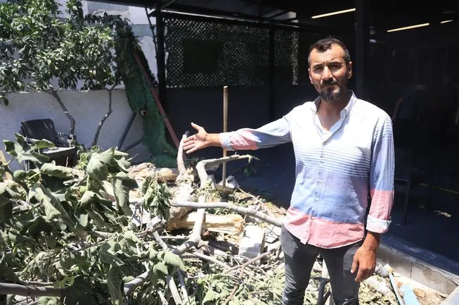 İş yerinde sipariş beklediği sırada hafriyat kamyonunun uçarak dükkana girdiğini dile getiren Ahmet Aksu, “Bu iş yerinde motokurye olarak çalışıyorum. Dışarıda sipariş beklerken yüksek ve gürültülü bir ses duydum. İçeriye girip baktığımda hafriyat kamyonunun bahçeye uçarak dükkana girdiğini gördüm. Kentte süregelen orman yangını nedeniyle helikopter sesi zannettim ama gökyüzünde helikopter olmadığını görünce içeriye baktım ve kamyonu gördüm. Zararımız var. Masalarımız, sandalyelerimiz ve ağaçlarımız hasar gördü. Ayrıca bir müşterimizin ayağında hafif bir yaralanma oldu. Allah bir daha göstermesin. Böyle bir durumun olacağını hayatta düşünmezdim” ifadelerini kullandı.