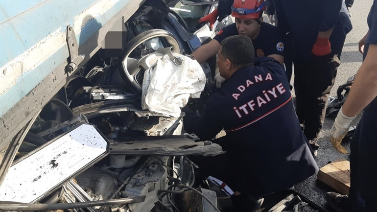 Adana'da seyir halindeki aracıyla öndeki TIR'a çarpan sürücü, aracının TIR'ın altına girmesi sonucu hayatını kaybetti.