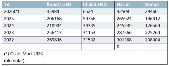 2025 yılında ise ticaret hacmi 265.9 milyon dolara ulaşarak sınırlı bir toparlanma sinyali verdi. Son beş yıllık görünüm, ticaret hacminde istikrarlı bir büyümeden ziyade dalgalı bir trendin hâkim olduğunu gösteriyor. 2022 sonrası dönemde yaşanan gerilemeye rağmen 2025 yılında kaydedilen artış, ticaretin yeniden denge arayışına girdiğine işaret ediyor. Bu süreçte ticaret hacmi hâlen 300 milyon dolar eşiğinin altında kalmayı sürdürüyor.