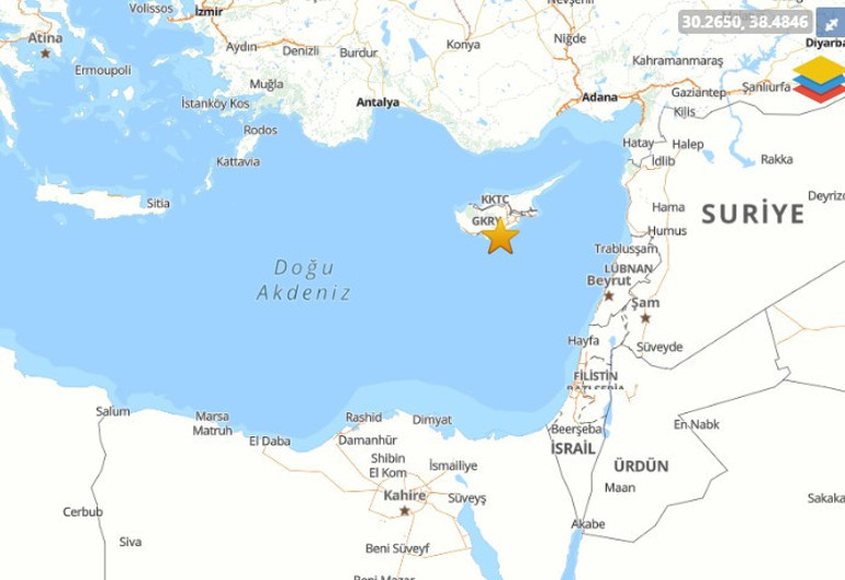 Afet ve Acil Durum Yönetimi Başkanlığı (AFAD) Deprem Dairesi'nden alınan bilgilere göre, Kıbrıs Adası yakınlarında saat 01:02'de 3.9 büyüklüğünde bir deprem meydana geldi. Söz konusu deprem, yerin 50.03 kilometre derinliğinde kaydedildi.