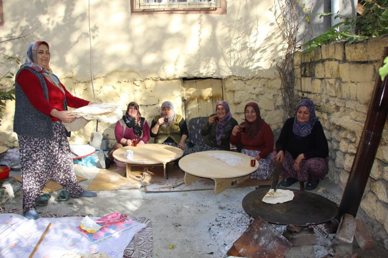 Kış hazırlıkları sürecinin yerel geleneklerden biri olduğunu dile getiren Arzu Ilıcak ise, “Gün boyunca yufka günü düzenliyoruz. Çay içip yemeklerden tadıyoruz. Evimin kışlık ihtiyacı olan 300 yufkayı hep birlikte hazırladık,” ifadelerini kullandı.