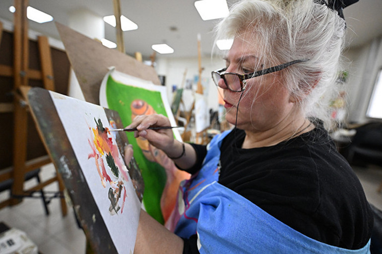 “Buradaki ortam geniş ve ferah. Zamanla hocalardan farklı teknikler öğreniyorum. Birlikte sürekli pratik yapıyoruz. Resim yapmak benim için bir tutku haline geldi. Burada herkes arkadaşça bir araya geliyor. Bazen birlikte gezmelere çıkıyoruz. Resim yapmayı meditasyona benzetiyorum, sakinlik ve huzur veriyor. 'Yeteneğim yok' diye düşünenler de yapılabilir, çünkü resim yaparken tüm dünyayı unutuyorum. Sadece resmime odaklanıyorum, kötü haberleri ve sorunları aklımdan çıkarıyorum.”