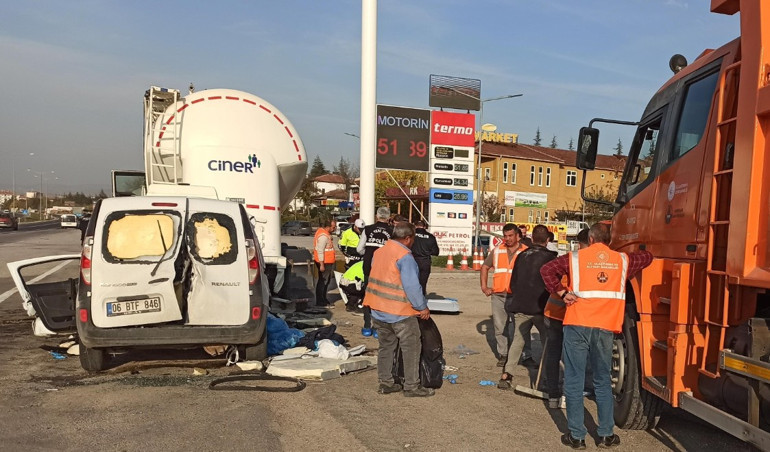 Yıldırım Beyazıt Mahallesi'nde, Serhat Yalçın'ın (33) kullandığı 06 BTF 846 plakalı hafif ticari araç, yol kenarında park halindeki bir tankere çarptı.