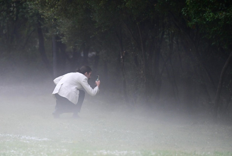 Öte yandan, parktaki yeşil alanlarda biriken dolunun buharlaşmasıyla oluşan “sis bulutu” bazı kişilerin ilgisini çekti ve film sahnesini andıran ortamda fotoğraf çekimleri yapıldı.