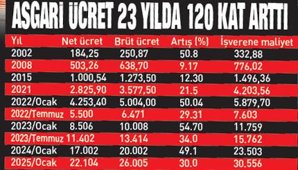 Günümüzde brüt asgari ücret 26.005,50 TL, net ise 22.104,67 TL olarak uygulanıyor. İşverenin toplam maliyeti ise sosyal güvenlik primleri ve işveren işsizlik sigortası ödemeleri dahil toplamda 30.621,48 TL olarak hesaplanıyor. Asgari ücretin %25-30 oranında artırılması bekleniyor. Bu durumda yeni ücret en az 27.630 TL olacakken, %30 artışla 28.735 TL'ye ulaşması öngörülüyor.