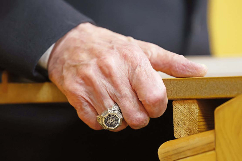 MHP Genel Başkanı Devlet Bahçeli, TBMM grup toplantısında Ayet-el Kürsi ile işlenmiş yüzük ve rozet takarak dikkatleri üzerine çekti.