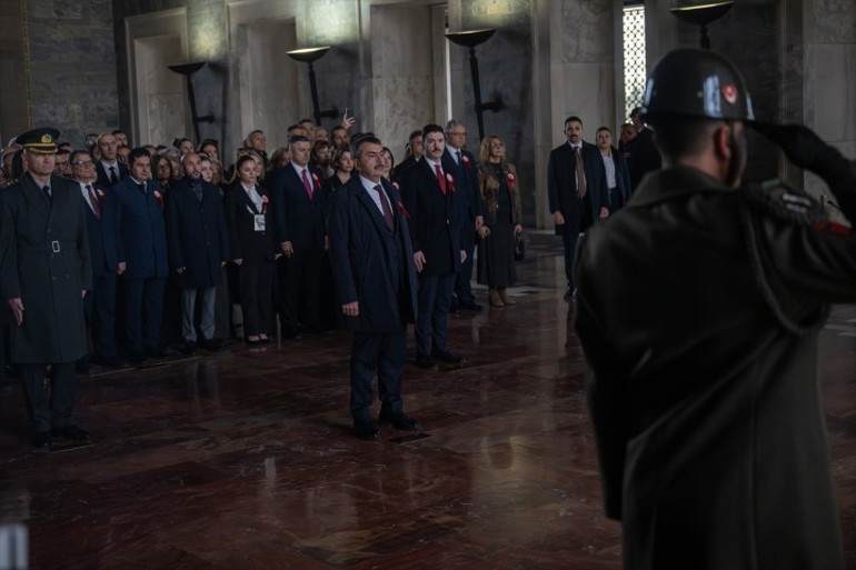 Bakan Tekin'in mozoleye çelenk bırakmasının ardından saygı duruşunda bulunuldu. Beraberindeki bürokratlar ve öğretmenlerle Anıtkabir merdivenlerinde hatıra fotoğrafı çektiren Tekin, daha sonra Misak-ı Milli Kulesi'ne geçerek Anıtkabir Özel Defteri'ni imzaladı.