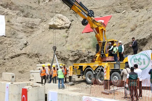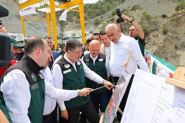 Bakan Yumaklı, baraj kapağını iş makinesiyle kapattı.