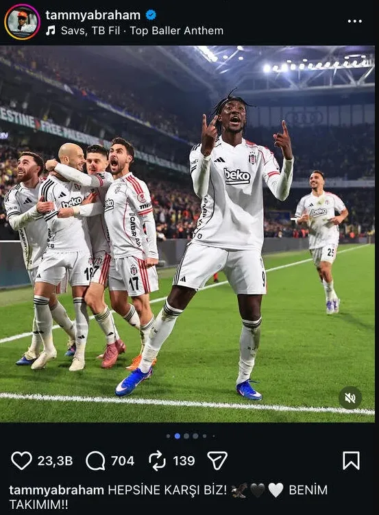 Siyah-beyazlı takımın kaptanı Orkun Kökçü, paylaşımında “Formanda teeeeeer” ifadelerine yer verdi. Tammy Abraham ise “Herkese karşı biziz! Benim takımım.” diyerek takım ruhunu vurguladı.