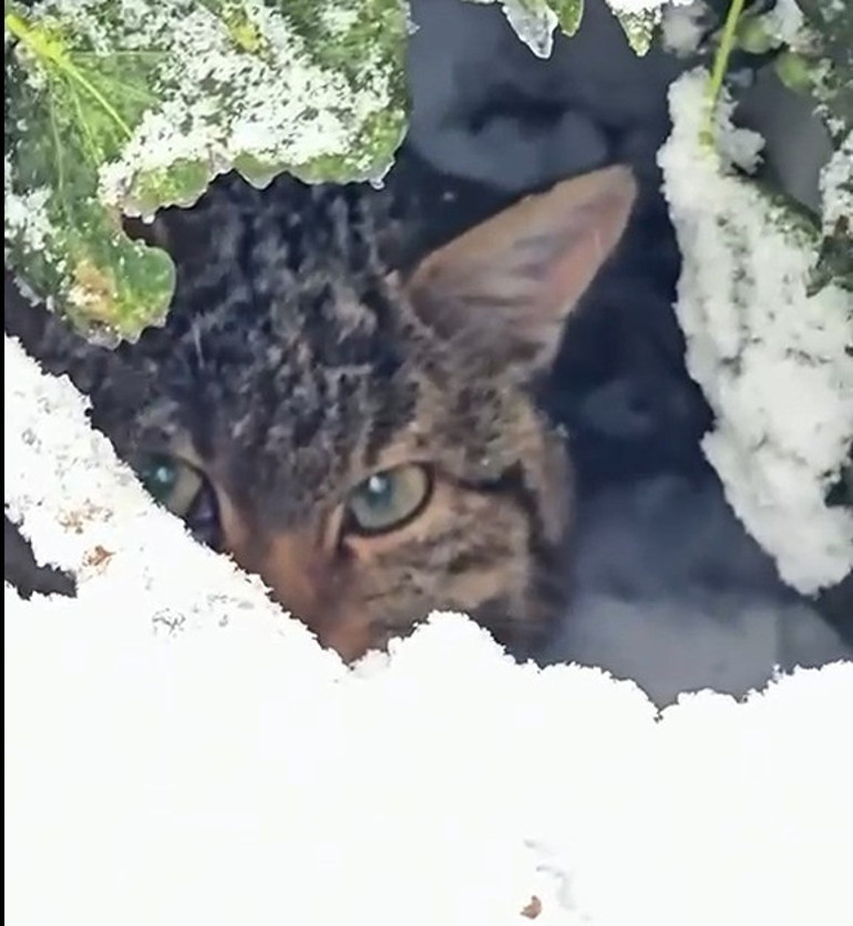 Yaban kedisinin karla kaplı ormanda sakin bir şekilde çevresini dikkatle gözlemlediği anlar, fotokapana yansıdı.