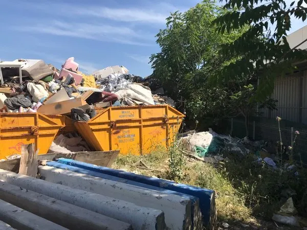Gaziemir Belediyesi’nin Sarnıç mahallesinde, fabrikalar ve konutlar arasında yer alan kamu arazisinde kaçak atık depoladığı tespit edildi.