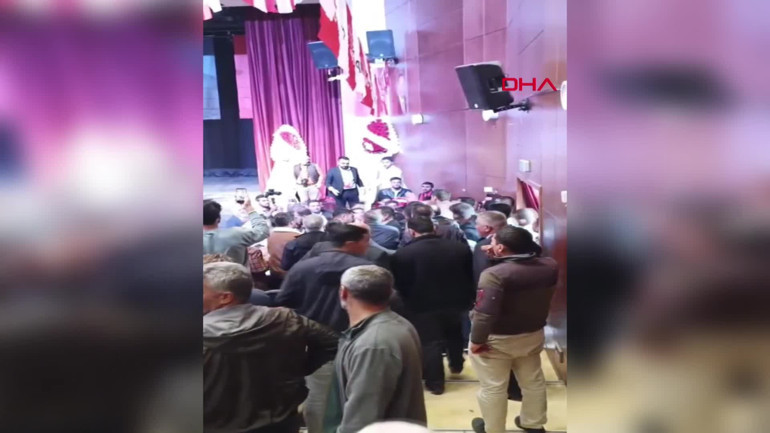 Sokağa taştığı görülen kavgaya polis ekipleri müdahale etti. Çevik kuvvetin müdahalesiyle taraflar güçlükle yatıştırılırken, kongreye bir süre ara verildi.