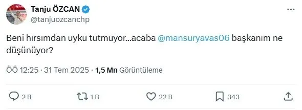Özcan'ın bu çıkışı CHP içinde yeni bir gerilim yaratırken, Genel Başkan Özgür Özel'den yanıt gelmesi uzun sürmedi. Özel, Tanju Özcan'a yönelik açıklamasında, “Kendi sınırını aştı.” şeklinde ifadelerde bulundu.