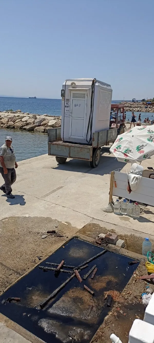 TESKİ'den gelen vidanjörle kaldırılan tuvaletin lağımları çekilerek çevre temizlendi. Olayı yakından izleyen plajdaki vatandaşlar, “Bir yanda denize giren çocuklar var, bir yandan da tuvaletin suları denize akıyor. Sabah Gazetesi haber yaptığı için bu bozuk tuvalet kaldırıldı. Gazeteye teşekkür ediyoruz. Bir doktor olan Tekirdağ Büyükşehir Belediye Başkanı Candan Yüceer'in, halk sağlığına dikkat etmesi gerekirken gazetede haber çıkana kadar hiçbir şey yapmamasına sinirleniyoruz” ifadelerini kullandı.