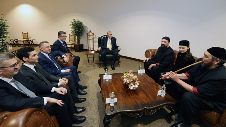 Cumhurbaşkanlığı Külliyesi'nde basına kapalı gerçekleştirilen kabulde, Tarım ve Orman Bakanı İbrahim Yumaklı, TBMM Dışişleri Komisyonu Başkanı Fuat Oktay ve Cumhurbaşkanlığı İletişim Başkanı Burhanettin Duran da hazır bulundu.