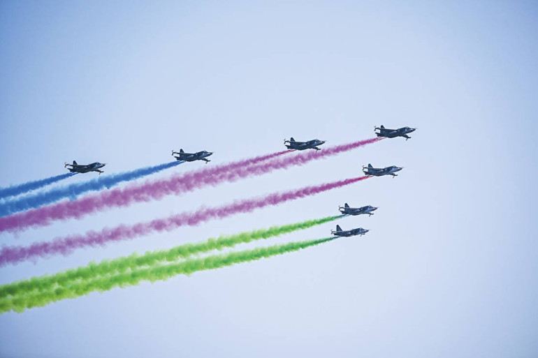 – Türk Hava Kuvvetleri'ne ait F-16'lar, geçit töreni kapsamında Bakü semalarında uçtu. Azerbaycan'a ait helikopterler de, Türkiye, Azerbaycan ve Pakistan bayraklarıyla donatılmış bir şekilde sahneye çıktı.
