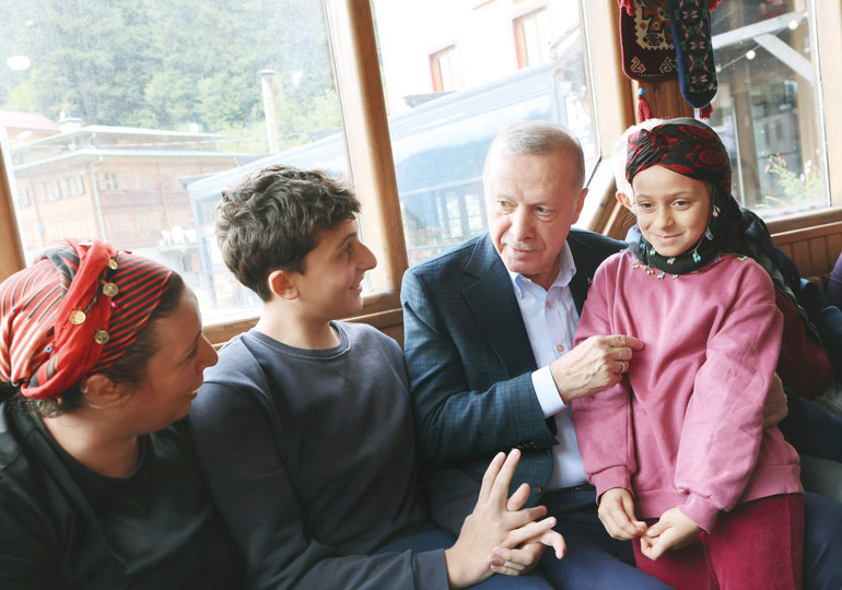 Cumhurbaşkanı Erdoğan, bazı programlara katılmak üzere geldiği memleketi Rize’de Ayder Yaylası’nı ziyaret ederek vatandaşlarla bir araya geldi. Partisinin İl Danışma Meclisi’nde yaptığı konuşmada, son ziyaretinin üzerinden geçen sadece 15 aylık süreye rağmen Rize’yi ve Rizeli hemşehrilerini özlediğini dile getiren Erdoğan, “Dün ve bugün gördüm ki Rizeli kardeşlerim de bizi özlemiş. Allah muhabbetimizi, kardeşliğimizi, yol arkadaşlığımızı daim eylesin” dedi.