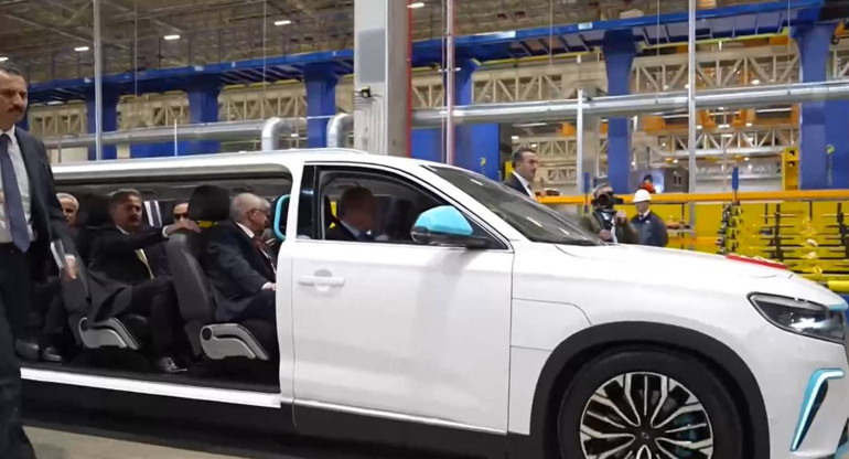 Cumhurbaşkanı Erdoğan, geniş bir konvoyla etkinliğe katıldı. Cumhurbaşkanlığı forsunun yer aldığı TOGG aracının daha uzun bir tasarıma sahip olması dikkatleri üzerine çekti. Erdoğan'a, aracın içinde bakanlar da eşlik etti.