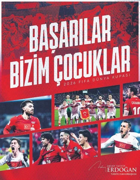 Cumhurbaşkanı Recep Tayyip Erdoğan, A Milli Takım'ın tarihi başarısı sonrasında sosyal medya üzerinden bir paylaşım yaptı. Erdoğan, 2026 Dünya Kupası play-off finalinde Kosova'yı mağlup eden A Milli Futbol Takımı'nı tebrik ederek, “Bizim Çocuklar” ifadesini kullandı.
