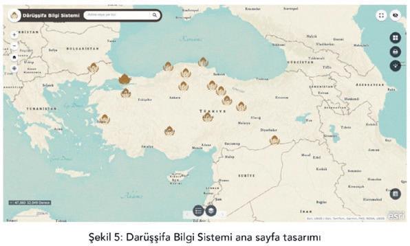 Oluşturulan dijital kültürel miras platformları aracılığıyla her darüşşifa için bulunduğu il ve konum bilgisi, kuruluş yılı, kurucusu ve niteliği, mevcut korunma durumu ve yapı fotoğrafları gibi veriler derlenmiştir. Türkiye genelinde darüşşifaların mekânsal dağılımı incelendiğinde, kuruluş dönemlerinin siyasal hâkimiyet alanları, tarihsel ticaret yolları ve bölgesel sağlık politikalarıyla ilişkili olduğu belirlenmiştir. Selçuklu dönemine ait darüşşifalar Kayseri, Sivas, Tokat, Konya ve Çankırı'da yer alırken, Osmanlı döneminde İstanbul, Bursa, Edirne ve Manisa'da inşa edilmiştir. İstanbul'da Süleymaniye, Haseki, Üsküdar Atik Valide, Darüssaade Ağası, Tophane, Balıklı Rum Hastanesi, Gureba ve Gülhane darüşşifaları gibi önemli yapılar mevcuttu. Amasya, Mardin, Kastamonu ve Sinop gibi kritik geçiş bölgelerinde ise darüşşifalar, bölgesel sağlık merkezleri olarak işlev görmüştür.