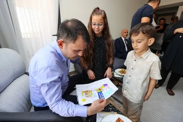 Bakan Kurum, Çıra ailesinin küçük çocukları 10 yaşındaki Hatice Kübra ve 5 yaşındaki Ahmet ile de sohbet etti. İki kardeş, TOKİ binasında oturacakları evlerini ve Bakan'ın evini yan yana çizecek şekilde bir resim yaptılar ve bu resmi Bakan Kurum'a hediye ettiler. Bakan Kurum, resmi TOKİ binasına asılması için TOKİ Başkanı M. Levent Sungur’a iletti.
