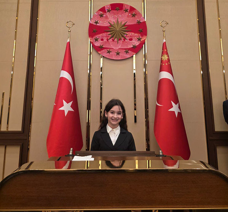 Cumhurbaşkanımız beni yanına çağırdı ve kim olduğumu sordu. Ben de, ‘Ben Lina, dünya birincisiyim’ dedim. O da bana, ‘Sen dünya birincisi olan kızımızsın demek’ dedi. Annem yanımıza geldi ve Cumhurbaşkanımızla konuştu. Sonra bana harçlık verdi. Cumhurbaşkanımıza, ‘23 Nisan’da koltuğunuza oturabilir miyim?’ diye sordum. O da ‘Tabii ki oturabilirsin, sen dünya birincisisin’ dedi. 23 Nisan’da Ankara’ya gidip koltuğa oturmayı planlıyorum. Yorumlarda bana destek olan ağabeylerime ve ablalarıma çok teşekkür ediyorum. Hedefim değişmedi; savcı olmak ve Nobel ödülünü kazanmak istiyorum” diye konuştu.