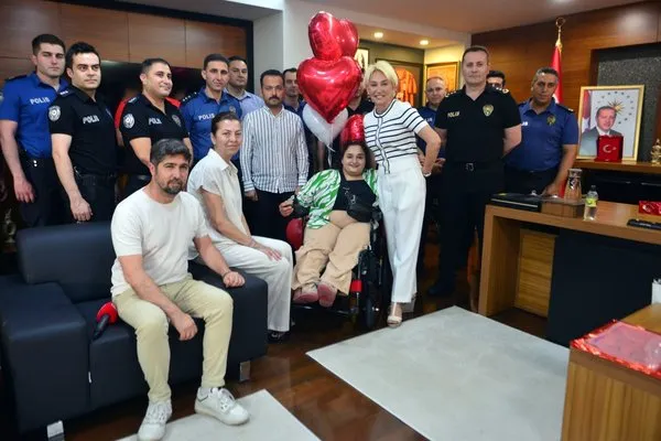 Seyhan İlçe Emniyet Müdürü Alper Yüksel ise, “İl Emniyet Müdürümüzün bilgi ve takdirleriyle güzel kızımıza hediyesini takdim ettik. Güle güle kullansın. İnşallah yürüdüğü, koştuğu günleri de görürüz. Hayırlı uğurlu olsun” açıklamasında bulundu. Akülü tekerlekli sandalyesine kavuşan Zozan, eğitim gördüğü merkezde çizdiği Galatasaray temalı yağlı boya tabloyu, Yüksel’e hediye etti. Ayrıca polisler, diğer özel çocuklara da çeşitli hediyeler verdi.