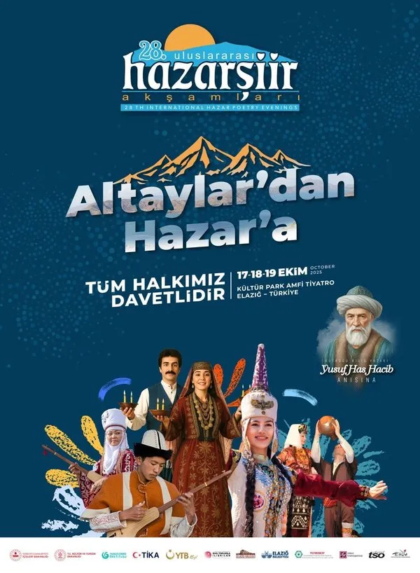 Türk Dünyası'ndan pek çok şair ve yazarı bir araya getirecek olan 28. Uluslararası Hazar Şiir Akşamları, büyük onur konukları Prof. Dr. Aziz Sancar ve Bilal Erdoğan'ın katılımıyla, yurt içindeki ve yurt dışındaki tüm vatandaşlar 17-18-19 Ekim 2025 tarihlerinde Elazığ'a davet edildi.