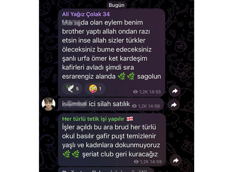 Kahramanmaraş ve Şanlıurfa’da peş peşe yaşanan okul saldırıları Türkiye’yi yasa boğdu. Saldırıların ardından Telegram gruplarında paylaşılan mesajlar adeta kan dondurdu.