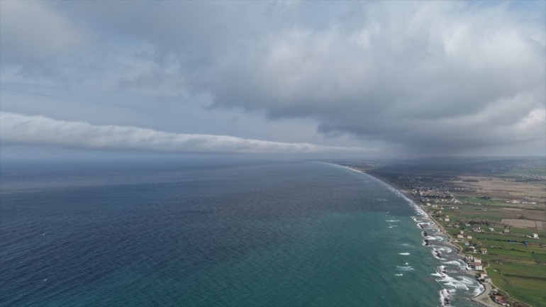 Öğle saatlerinde Karadeniz üzerinden ilerleyen silindir şeklindeki bulut oluşumu, kısa sürede sahil hattı boyunca gözlemlendi.