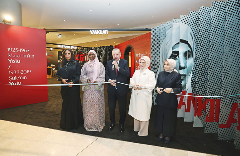 Cumhurbaşkanı Tayyip Erdoğan ve eşi Emine Erdoğan, İstanbul Atatürk Kültür Merkezi'nde düzenlenen ‘Uluslararası İnsan Hakları Konferansı ve Yankılar; Şule Yüksel Şenler ve Malcolm X’in Mirasını Yaşatmak’ sergisinin açılışına katıldı. Sergi, Şule Yüksel Şenler ile Malcolm X’in adalet, inanç ve toplumsal mücadele miraslarını bir araya getiriyor. Açılışta Senegal Cumhurbaşkanı Bassirou Diomaye Faye’nin eşi Marie Khone Faye, The Malcolm X & Dr. Betty Shabazz Eğitim Merkezi Yönetim Kurulu Başkanı Ilyasah Shabazz, Demirören Holding Yönetim Kurulu Başkan Yardımcısı Meltem Demirören ve birçok davetli de yer aldı. Cumhurbaşkanı Erdoğan törende şu ifadeleri kullandı: