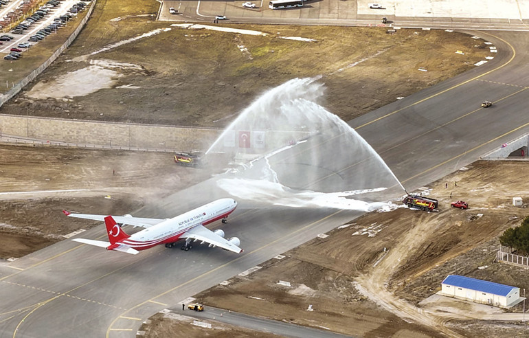 – ESENBOĞA Havalimanı’nda dün hizmete giren 3. pist, yeni hava trafik kontrol kulesi ve tamamlayıcı tesislerle birlikte yolcu ve uçuş kapasitesinde önemli bir artış sağlanması öngörülüyor. 3. pist 3 bin 750 metre uzunluğunda ve 75 metre genişliğinde inşa edildi. Yeni pist ile birlikte havalimanında eşzamanlı iniş ve kalkış kapasitesi artırılacak, hava trafiğinde süreklilik ve operasyonel hız sağlanacak. Proje kapsamında inşa edilen Yeni Hava Trafik Kontrol Kulesi 77 metre yüksekliğe sahip. Toplam 13 bin 500 metrekarelik teknik alanla donatılan kule, modern altyapısıyla hava trafiği yönetiminde etkinliği artıracak. Yeni kule sayesinde uçuş operasyonları daha güvenli ve koordineli bir şekilde yürütülecek. Yapılan yatırımlarla Esenboğa Havalimanı’nın yıllık yolcu kapasitesi 20 milyondan 30 milyona çıkarılacak.
