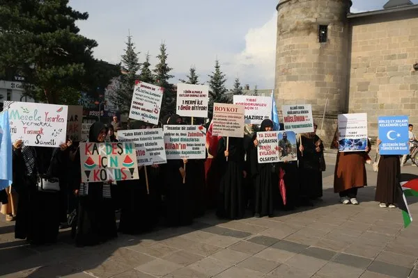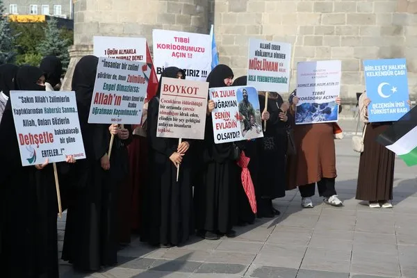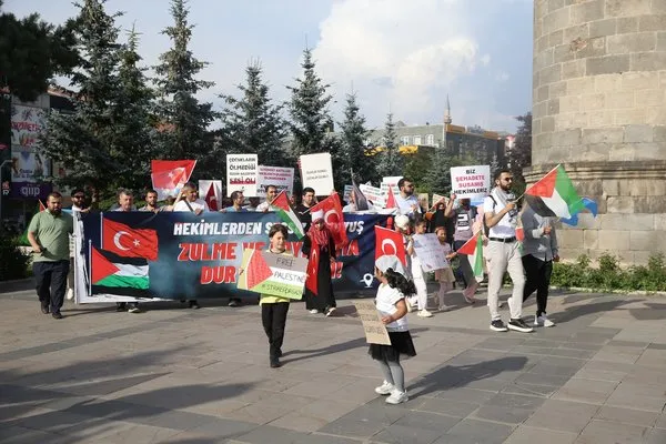 Kent merkezindeki Lala Mustafa Paşa Cami önünde toplanan doktorlar ve tıp fakültesi öğrencileri, Türk, Filistin ve Doğu Türkistan bayrakları eşliğinde, hazırladıkları döviz ve pankartlarla Yakutiye Medresesi'ne doğru yürüyüş gerçekleştirdi.