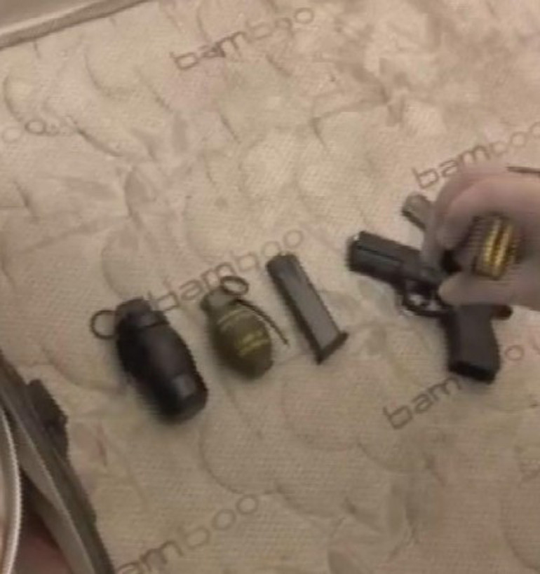 Evde yapılan aramada, 4 ruhsatsız tabanca, 2,5 kilogram eroin, 1 el bombası, 1 gaz bombası ile çok sayıda hassas terazi ele geçirildi.