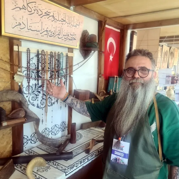 15 yıl boyunca lojistik müdürlüğü yapan Cem Aral, Geleneksel Türk Tespih Sanatıyla tanışmasının ardından hayatının değiştiğini belirtti: “Bu sanatı öğrendikten sonra hayata bakış açım değişti. Sabretmeyi öğrendim. Hayata karşı mottom artık ‘tane tane sabır.’ Ahşap tespihler yapıyorum. Çünkü ağaçlar da insanlar gibidir. Toprakla ilgilenmek, insanın özüne dokunur. Manevi olarak çok büyük katkıları oluyor.” Gençlerle tanıştığı ve eğitim almak isteyenlerden memnun kaldığını belirten Aral, “Unutulmaya yüz tutmuş sanatları gençlerle buluşturmak, geleceğimizi sanatla taçlandırmaktır. Hepsine ücretsiz eğitim veriyorum. Çünkü bu sanatlar yaşatılmalı,” dedi.