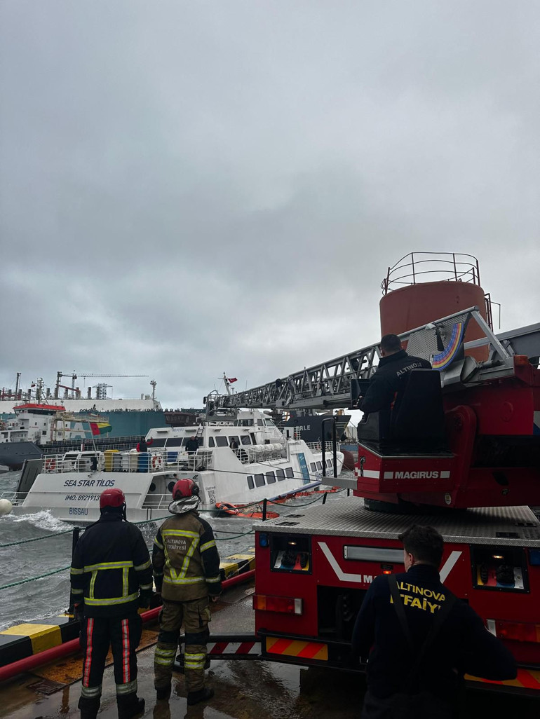 Altınova Tersaneler Bölgesi'nde, yabancı bayrak altında sefere çıkan ‘Sea Star Tilos’ adlı yolcu gemisi, bakım ve onarım çalışmaları sırasında etkili olan fırtına nedeniyle 6 personelin iskeleye inemeyerek mahsur kalmasına sebep oldu.