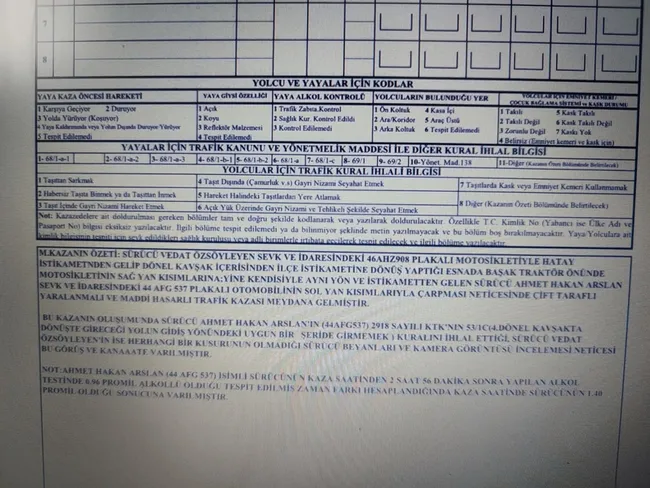 Öte yandan kazayla ilgili tutulan polis raporunda, otomobil sürücüsünün kazayla ilgili tamamen kusurlu olduğu, kaza anından 3 saat sonra yakalandığında yapılan ölçümde 1.40 promil alkollü olduğu belirtildi.