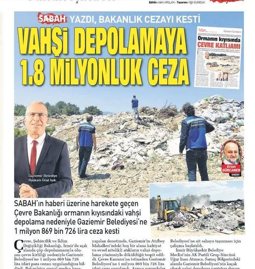 Geçtiğimiz hafta, Gaziemir Belediyesi’nin Sarnıç’ta orman alanı sınırına yakın bir bölgede vahşi depolama yaptığı belirlenmiş ve SABAH, bu durumu ‘Orman kıyısında çevre felaketi’ başlığıyla manşetine taşımıştı. Haberimizi ihbar kabul eden Çevre Şehircilik İzmir İl Müdürlüğü, katliamın yaşandığı alana giderek tespitlerde bulunmuştu. Bu nedenle Gaziemir Belediyesi’ne 1.8 milyon lira para cezası kesildi.