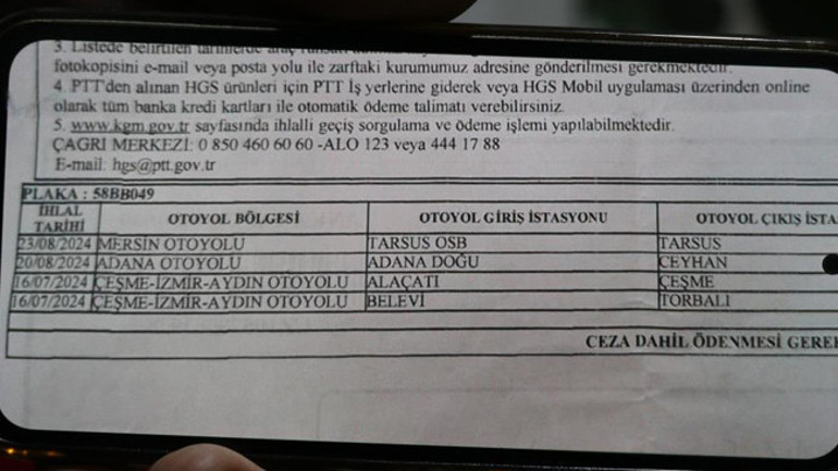Yiğit, yaşadığı bu hatanın, yüksek meblağlarla ödeme imkanı olmayan kişilerin de başına gelebileceğini söyledi. “Bana ulaşan tebligatta, ücretli otoyola girdiğim ve ücret ödemediğim belirtiliyor. Sivas’ta yaşıyor olmama rağmen İzmir, Alaçatı, Çeşme, Adana ve Pozantı gibi yerlerden geçiş yapmışım. Bu yüzden ceza belgesi aldım. Zorunlu olarak ödememi yaptım ve şimdi itirazımı gerçekleştireceğim. 2024 yılının Temmuz ve Ağustos aylarında bu geçişlerin yapıldığı yazıyor. O tarihlerde ben Sivas'taydım. Bu duruma gerçekten hayret ediyorum. Küçük bir miktar geldi, ama büyük bir miktar da gelebilirdi. Bu tür hatalar, ödeyemeyecek durumu olan insanları mağdur edebilir.” dedi.