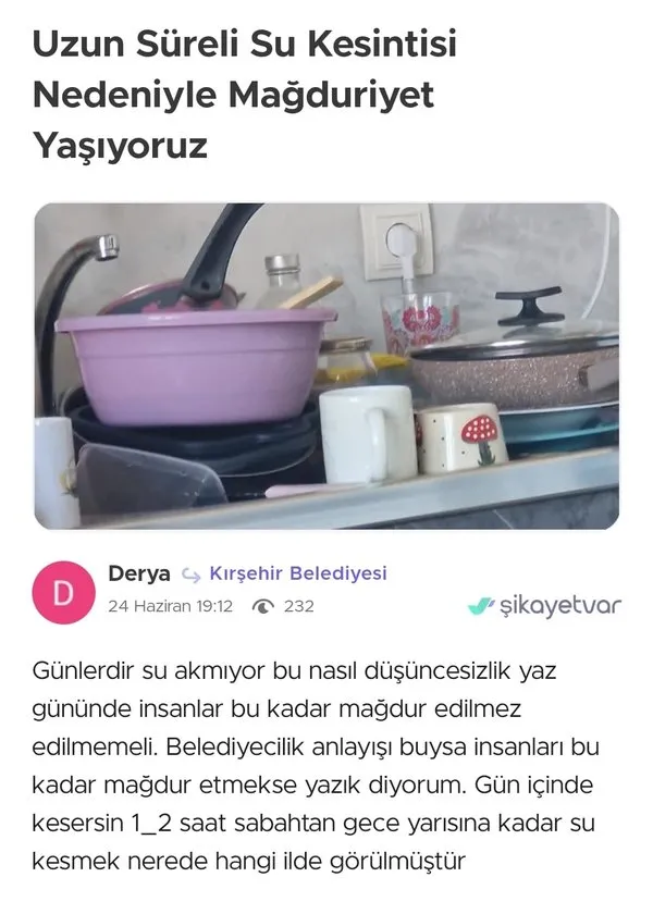 Çocuklu aileler, yaşlılar ve kronik hastalığı bulunan bireyler, su kesintilerinden olumsuz şekilde etkilenirken, CHP'li Kırşehir Belediyesi, yaşanan su krizinin içme suyu kuyularındaki seviye düşüklüğü ve pompa arızaları nedeniyle oluştuğunu açıkladı.