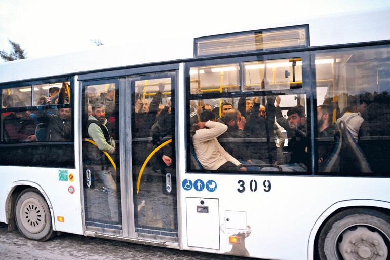 ATEŞ ETTİKLERİ OTOBÜSLERLE ÇIKARILDILAR