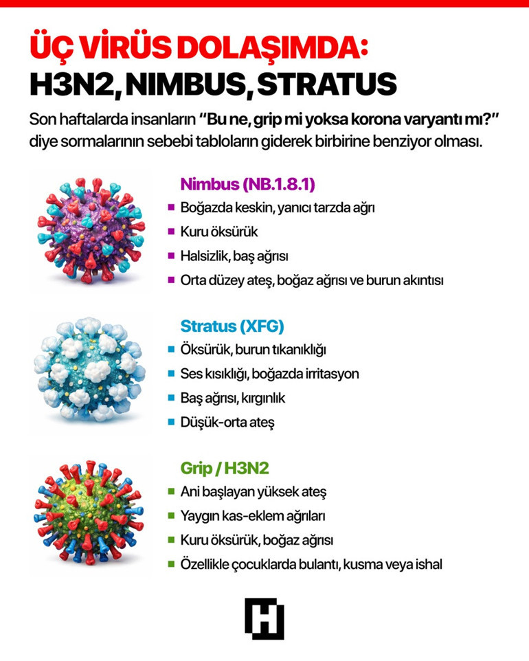 Dr. Süleyman Alpar, durumun bölgeye göre değiştiğini belirtti: “Avrupa ve Amerika'da Stratus (XFG) biraz daha baskın, Batı Pasifik’te ise Nimbus daha önde görünüyor. Bizde de hangi varyantın baskın olduğunu söylemek zor, bu sürekli değişiyor.”