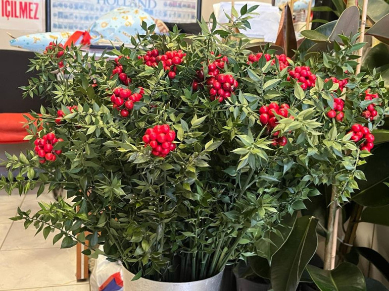 Koç, “Bu mevsim itibarıyla kokinalarımız şu anda en revaçta olan bitkilerimiz. Kokina; iki ayrı bitkiden oluşan, kırmızı meyvelerin yeşil yapraklara iple bağlanmasıyla hazırlanan bir bitkidir. Aralık ayı itibarıyla en çok sattığımız bitkidir. Özelliği, insanların yılbaşında bu çiçekle yeni yıla girmeleridir; eğer kokina bir yıl boyunca evde bozulmadan kalırsa ev sahibinin olacağına inanılır” şeklinde konuştu.