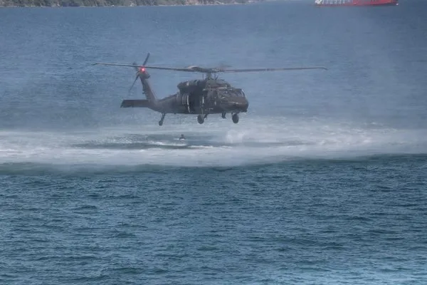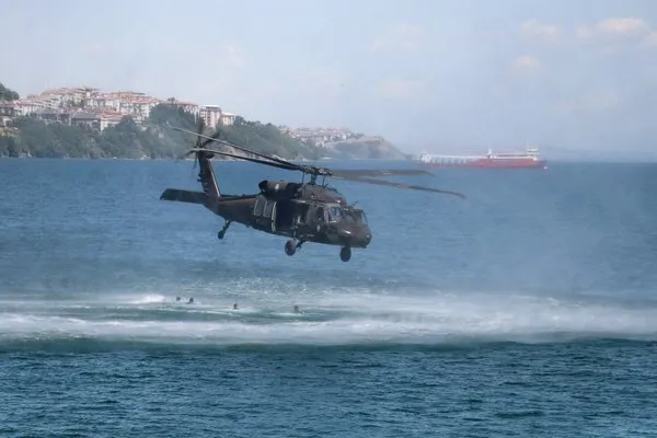 Hava indirme yapan helikopter, stadyumda bekleyen dalgıç timini alarak deniz bölgesine yönlendirdi. Dalgıçlar, hover cast yöntemiyle denize bırakılarak görev alanlarına yöneldi. Profesyonellikleri ile dikkat çeken dalgıçlar, tatbikatın en etkileyici anlarına imza attı.