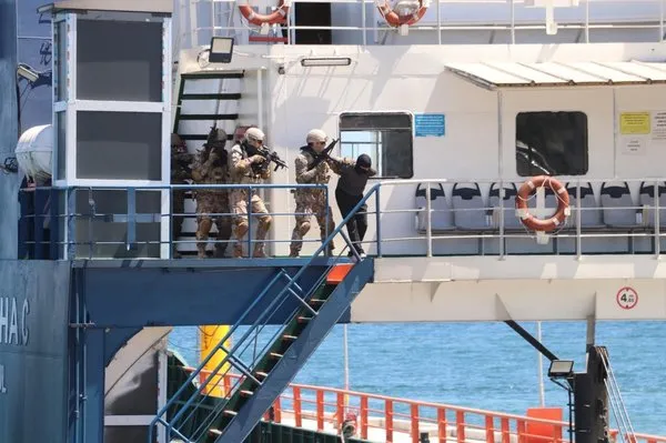Liman çevresinde suçluların nöbet tuttuğu bir barakaya, su altından sızan 2 SAOB personeli bomba düzeneği ile müdahale etti. Ardından, sahada görevli ekipler birinci gemiye botlarla yanaşarak silahlı kişilerle çatışmaya girdi. İkinci gemiye ise eş zamanlı olarak havadan bir operasyon düzenlendi. Polis helikopterinden halatlarla inen personel, geminin üst katlarında kontrol sağlarken, karadan ilerleyen ekipler alt katlar ve makine dairesini araştırarak tüm tehdit unsurlarını ortadan kaldırdı.